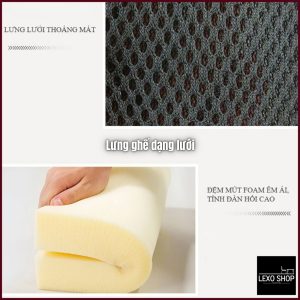 – Đệm ngồi lót đệm cao su được bọc vải lưới thoáng khí chống bám bám bẩn