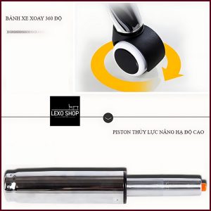 – Khung chân ghế thiết kế hình ngôi sao 5 cánh chịu lực cực tốt, bánh xe lăn giúp ghế di chuyển nhẹ nhàng