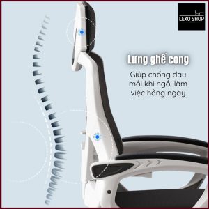 - Thiết kế công thái học: Ghế được thiết kế với đường cong tự nhiên phù hợp với lưng và cổ, giúp giảm áp lực và mệt mỏi khi ngồi trong thời gian dài.