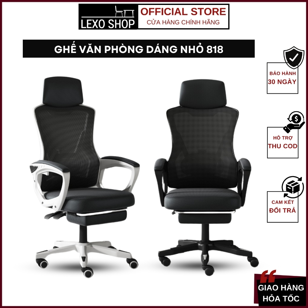 Ghế Văn Phòng 818 LEXO015, Thiết Kế Thông Minh, Nhỏ Gọn Có Kê Chân Tăng Cường Sự Thoải Mái